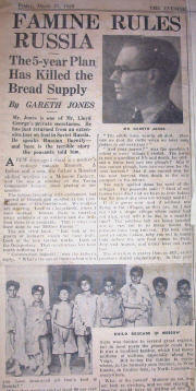 Famine ExposureNewspaper Articles relating to Gareth Jones' trips toThe Soviet Union(1930-35) |