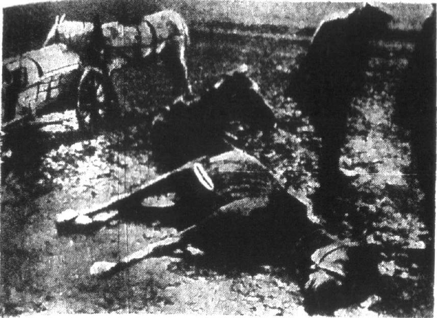 evidence. [Top] Dead and dying horses near the collective farm at Belgorod.
