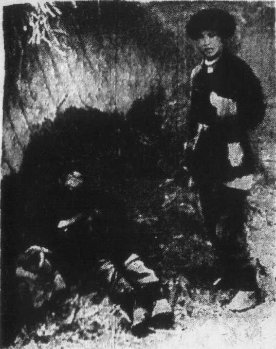 point. [Left] The boy is weeping. He stands near the body of his father, who