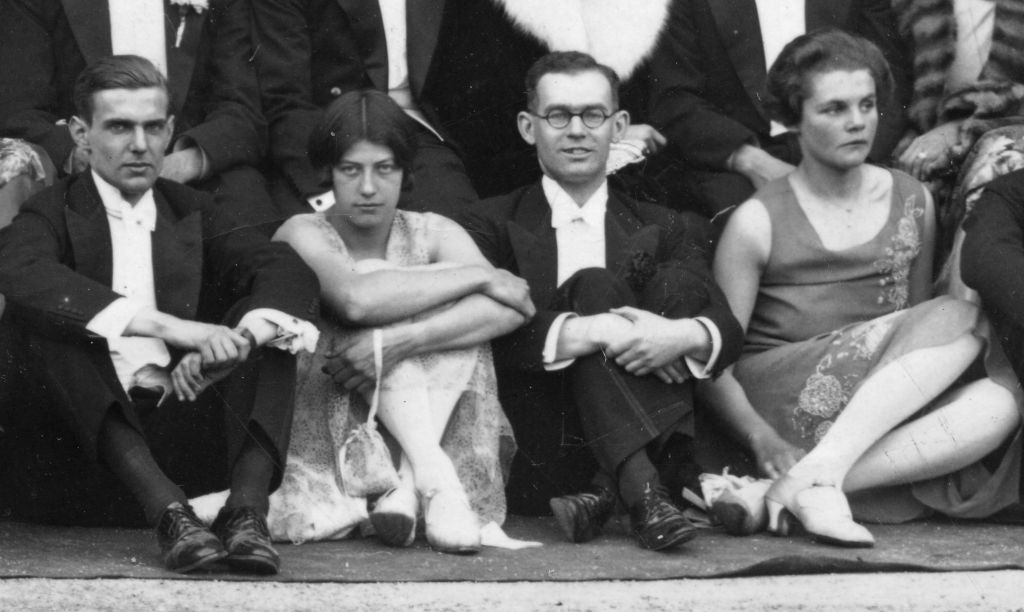 Gareth at the Trinity College May Ball, photographed outside The Wren Library in. 1929, (With Insert of Gareth seated at front).