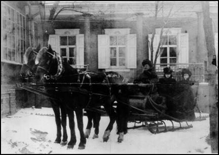 Members of the Hughes family on a horse drawn sleigh, 1890’s One winter was exceptionally severe, so severe and so deep was the snow that for two to three weeks we were imprisoned in the house, all communications with the outside world completely broken and the works stopped. Fortunately we had stocked ourselves with provisions in early winter, a wise precaution in such a country. We had visitors staying with us at the time and they were totally unable to leave until the snow was cleared. It was even higher than our windows so that for sometime we saw nothing of the outside world. Still indoor life was not too bad, reading kept us going, cards always for money. What we had to guard against was sudden snowstorms. They were of frequent occurrence and we had to take great precautions that we should not be caught in them while sledging. It was not at all a rare thing to find peasants who had been overtaken by storms in the Steppes. Several times we returned with some members of our party suffering from frostbite of the nose or cheek. We had to be very cautious indeed. We were on one afternoon on the point, of going out for a sledge drive when we were persuaded not to go as the weather was threatening so we reluctantly stayed at home and it was very fortunate thing that we did for a severe snowstorm came on mere like a whirlwind in nature. Early next morning 11 bodies were found frozen to death in the Steppes quite close to Hughesovska, including a boy whose mother hailed from Rhymney. My favourite outdoor pleasure and exercise in winter was skating, but this we could only indulge in the early months before the very cold weather set in. It was a fine scene to see the hundreds of people flitting like swallows over the large frozen reservoir dam (constructed by the company), nor was this exercise confined to weekdays only, Sunday after service in Church was the most popular day for this, indeed for every other form of enjoyment, card playing, circuses, dances, balls, parties of all kinds, riding, boating and hunting. It was on Sunday that the markets and the Bazaar was a scene of great bustle and excitement. Sledging was however as popular and enjoyable outdoor recreation as skating, we often formed parties of 6 or 7 sledges and away we would dash over the Steppes at breakneck pace drawn by Troikas. The Russian Troika consists of 3 horses abreast adorned with bells, the centre horse trots the outsiders gallop, followed almost always by a crowd of the most unsightly wolfish dogs one could ever see. In Russia as in Turkey where dogs act as scavengers it is considered a great crime to kill a dog. They are very numerous indeed, they often seem in a half starved condition and indeed we often thought we were being followed by a pack of wolves. As the sledge is the conveyance in winter so is the torsi in summer. It more resembles a square plank on wheels than a carriage. It was by no means comfortable on long journeys, or cosy, as there was no support for the back, sitting on his heels was a favourite position with Russian drivers. The severe winter lasts for about 6 or 7 months and often into April and May when an extremely sudden change follows. The antic of snow disappears and the sun bursts out in all its glory, all is covered with an inconceivable thickness of mud, then it is impossible to walk or drive anywhere. Conveyances cling to the mud, people get stuck and only with great difficulty are they extricated. Suddenly all nature revives, the trees bud and bloom with the most marvellous rapidity and we could almost detect the processes of change. A beautiful eye-soothing greenness covers the plain and then it is that the violets and other flowers spring forth. Indeed it is to me a perfect transformation scene, and all takes place within a few days. But the delight of spring is of far too short a duration, generally a fortnight, it was a cause of congratulation if spring lasted 3 weeks. Summer follows with a heat as intense as the winter was cold. The winter was the pleasantest season despite the cold; the heat of the summer was simply unbearable. The double padded windows of winter are now reduced to one; the dark blinds are down all day until evening. Flies, mosquitoes, locusts and other unmentionable little brutes abound in thousands; we felt sometimes too languid for anything and would have given much for a whiff of air. Our summer garments were as light as the winter ones were heavy and warm. We kept indoors all day unless it was absolutely necessary to go out, when evening came we went out a little, only then could we endure it. This great heat coupled with the total want of drainage, great dearth of rain, prevalence of dry sand dust gave rise to fevers of all sorts, which greatly damaged our health. The mortality from dysentery especially among little children was simply appalling from 40 - 50. Mothers returned to work in the fields within days after the advent of their little ones. Sometimes we had no rain for months with the consequence that the works had to close. To amend this state of things a dam was constructed by the company, which supplied the works with water as well as supplying us with a splendid skating and boating ground. The autumn, which is as short as the spring is most cool and pleasant. Then riding was the order of the day and hunting. I must tell you something about the people. What strikes me immensely is the wide, enormous, unbridged gulf between the upper and lower classes of Russia. Unfortunately there are only two real classes; there is no real middle class, the chief mainstay and backbone of a country. The wellborn Russian despises and spurns the lowborn moujek or peasant and treats him on most occasions more like a dog than a human being. To this day the poor moujek bears the impress of serfdom or slavery in every action and in every word. It was in 1861 that Alexander II, who was afterwards most foully murdered in 1881, granted emancipation to the serfs who had