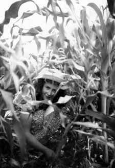 Betty and Averil Davenport-Brown in the corn at Oakfield, |
